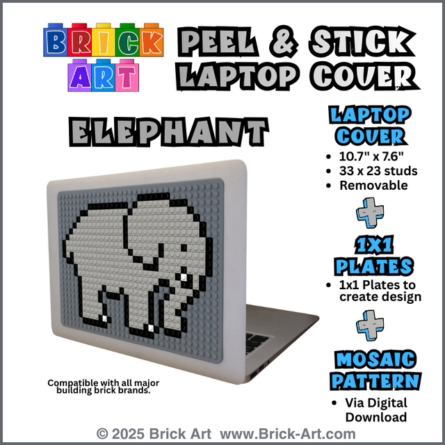 Peel & Stick Laptop Cover & Elephant Pattern & 1x1 Plates